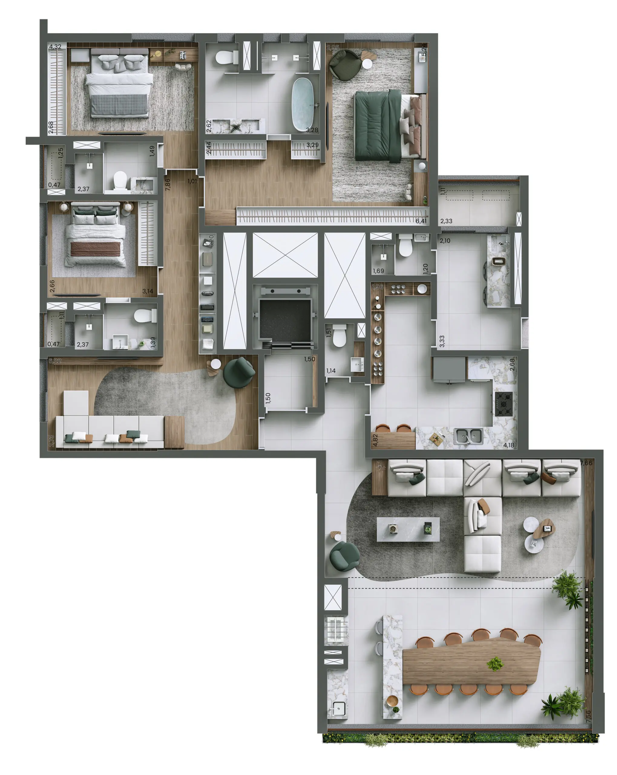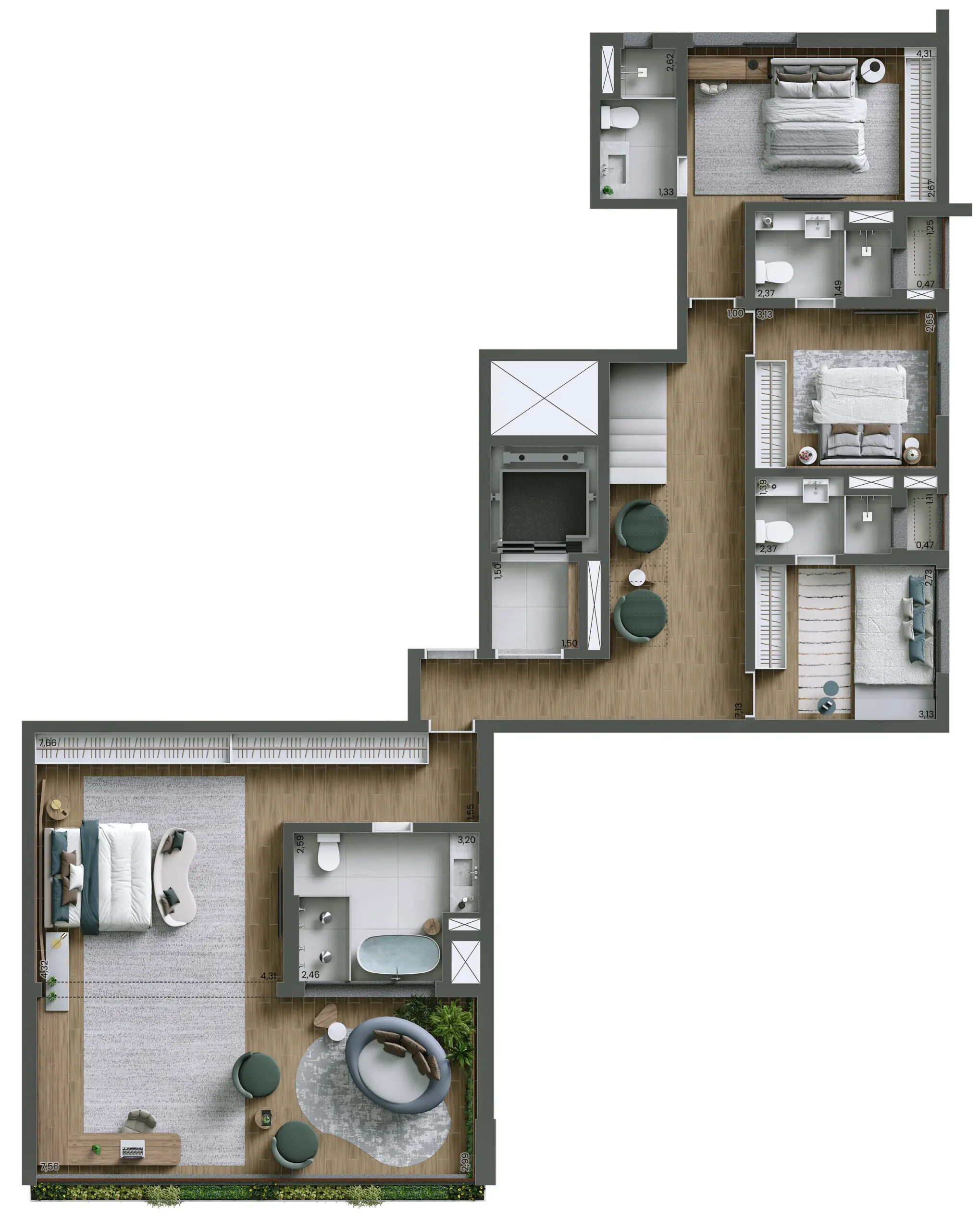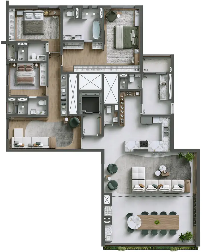 Com 4 suítes – 207m² Unidades Com Pé-direito Duplo*